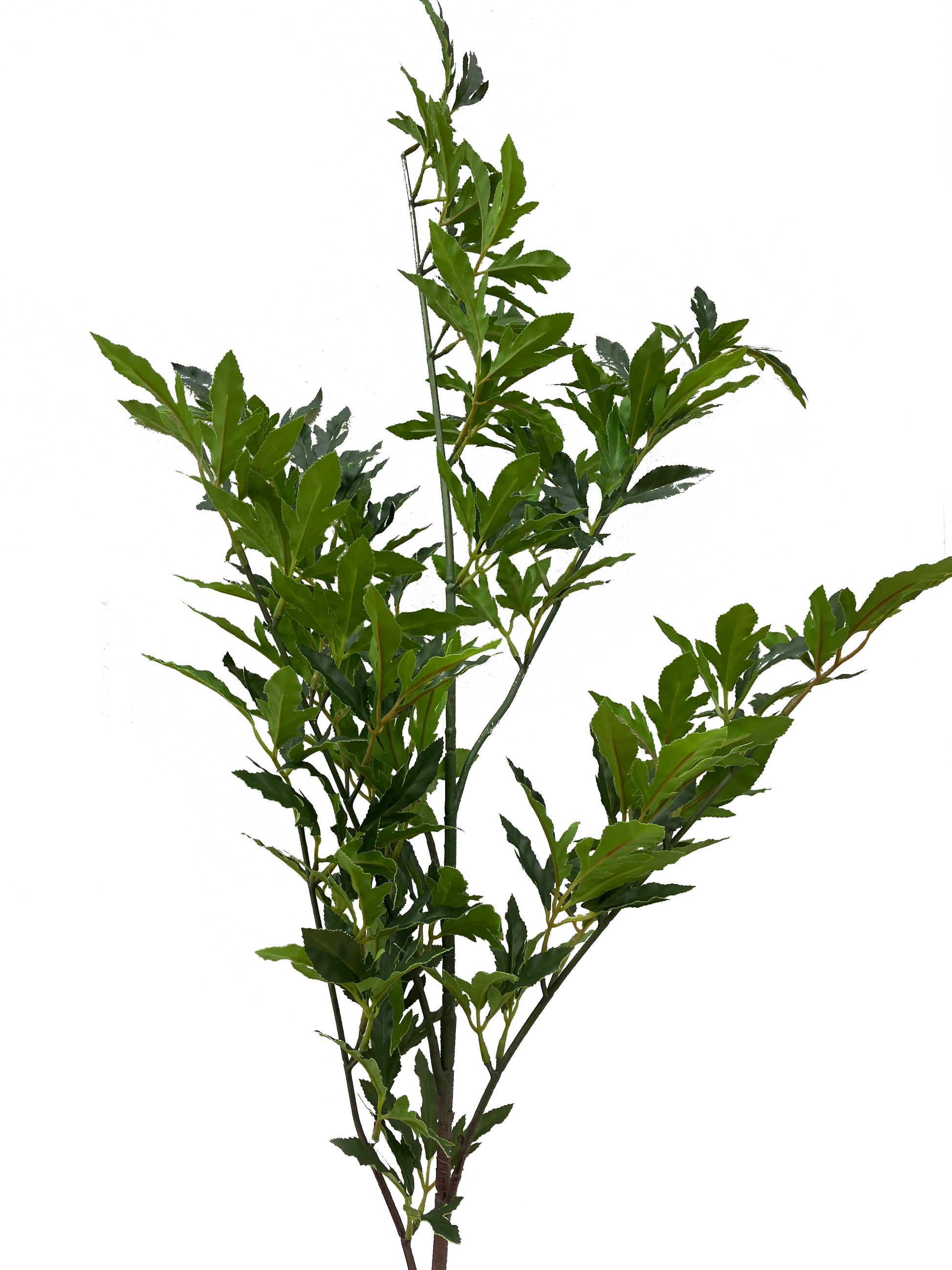 Artificial Aucuba branch is a bushy foliage stem that will add fill and texture to your floral pieces. Please note this product is oversized, the product will need to be bent to fit in box for transit, stems have wire so you can unbend on arrival. Great Filler, example of product used in third photo.