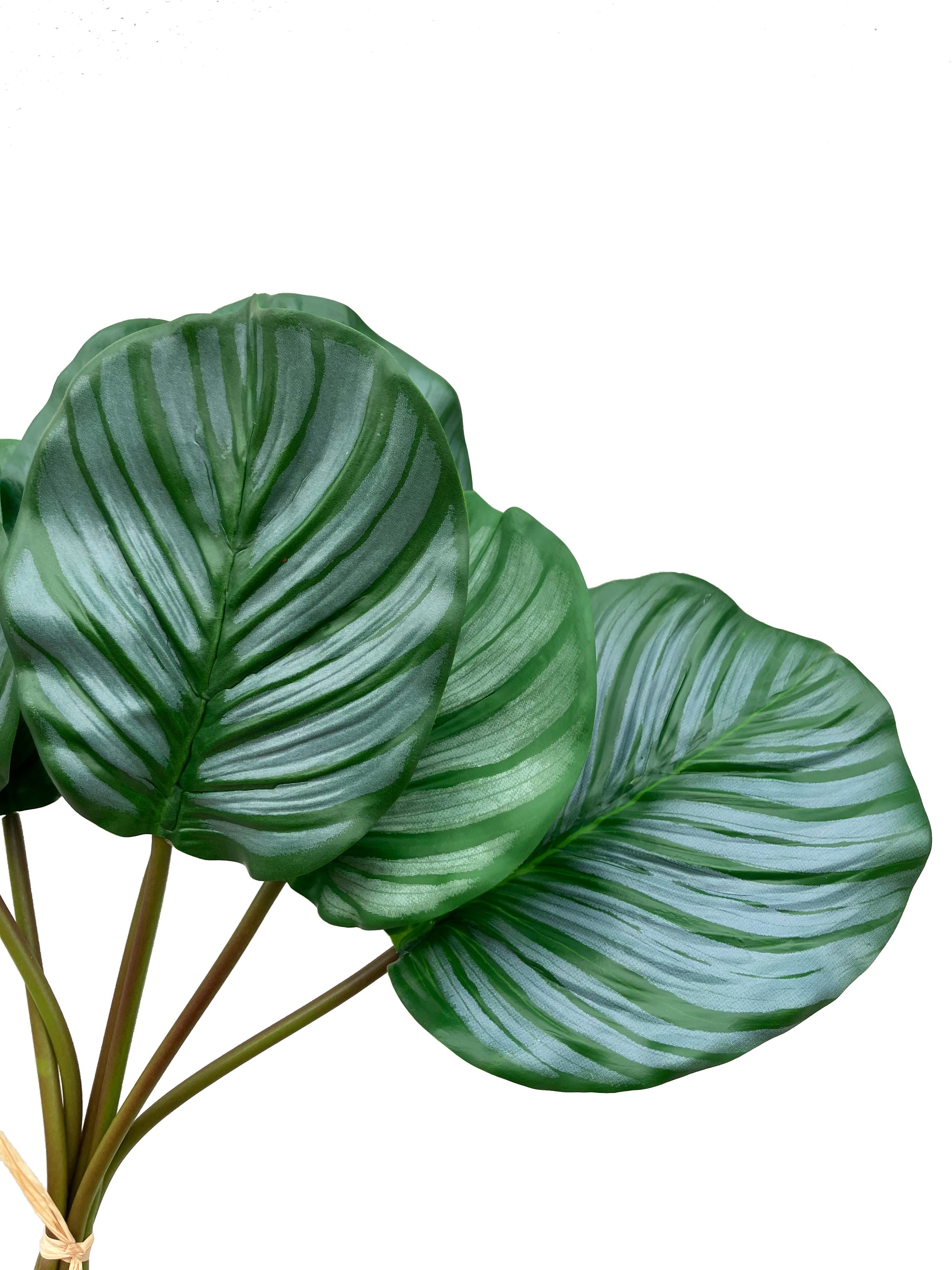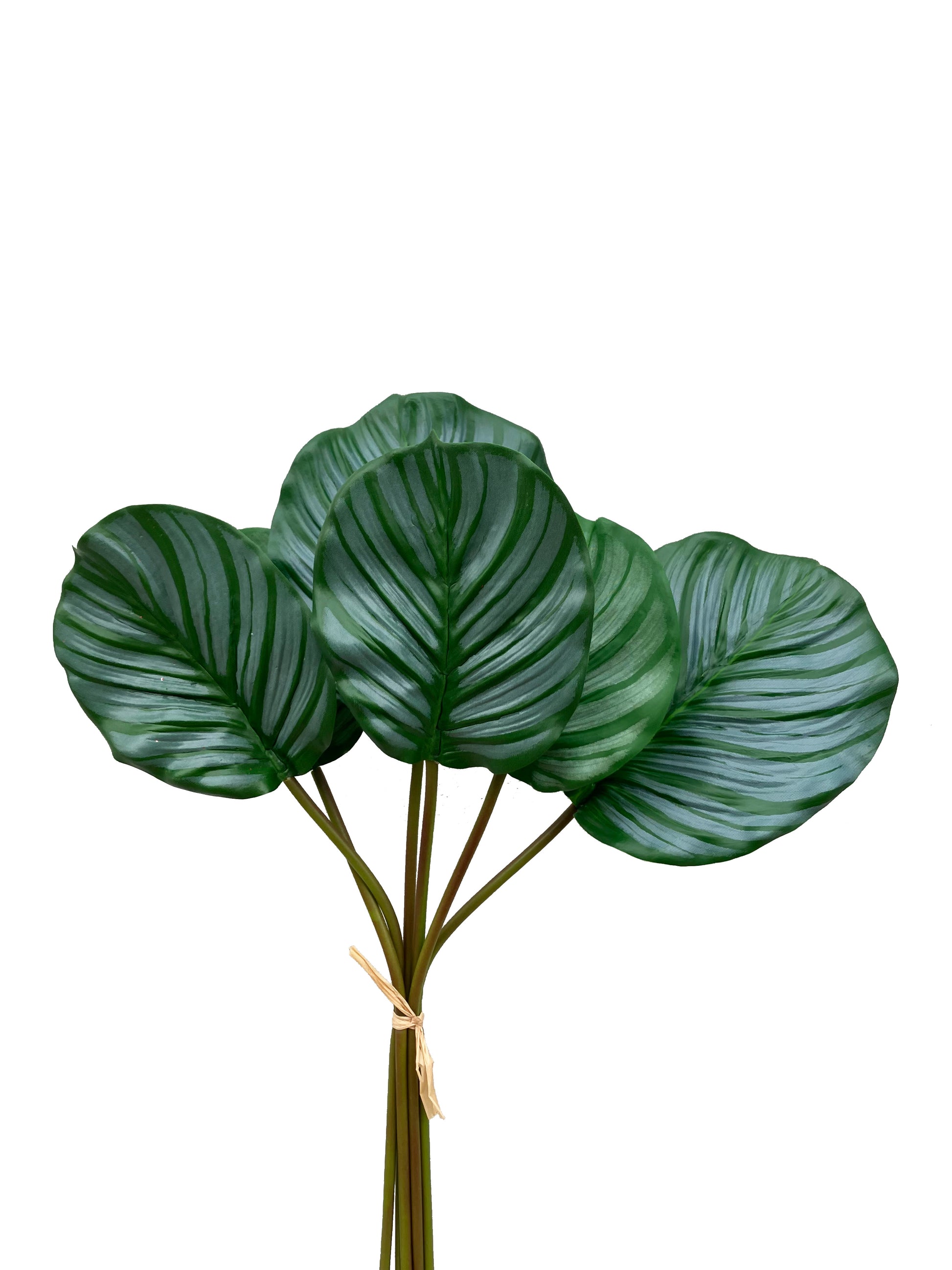 Our artificial calathea's are easily seperated so you can use in your tropical floral arrangement. there are 6x stems per bundle.