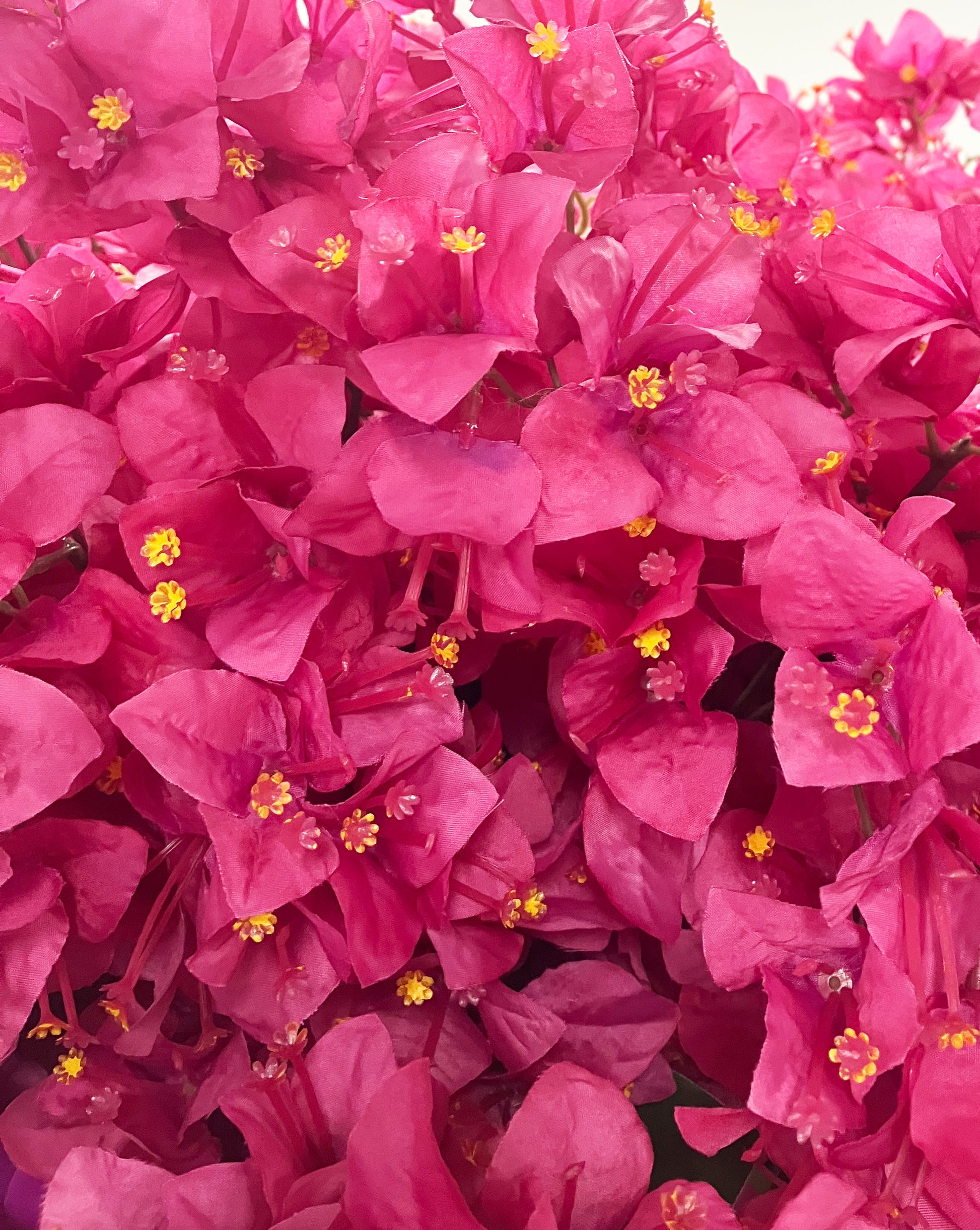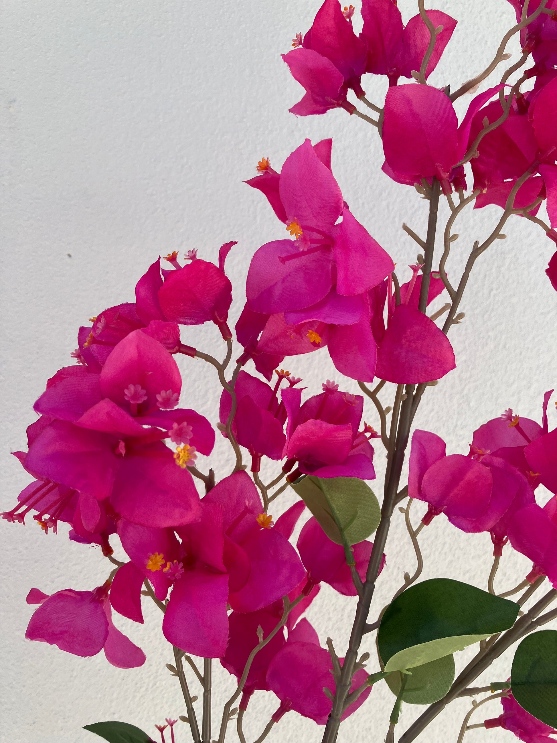 Buganvilla artificial en rosa intenso. Un dato curioso sobre esta increíble planta es que los colores vibrantes provienen de las hojas y no de las flores. Este vibrante rosa fuerte hace una verdadera declaración y funcionará bien con cualquier arreglo.