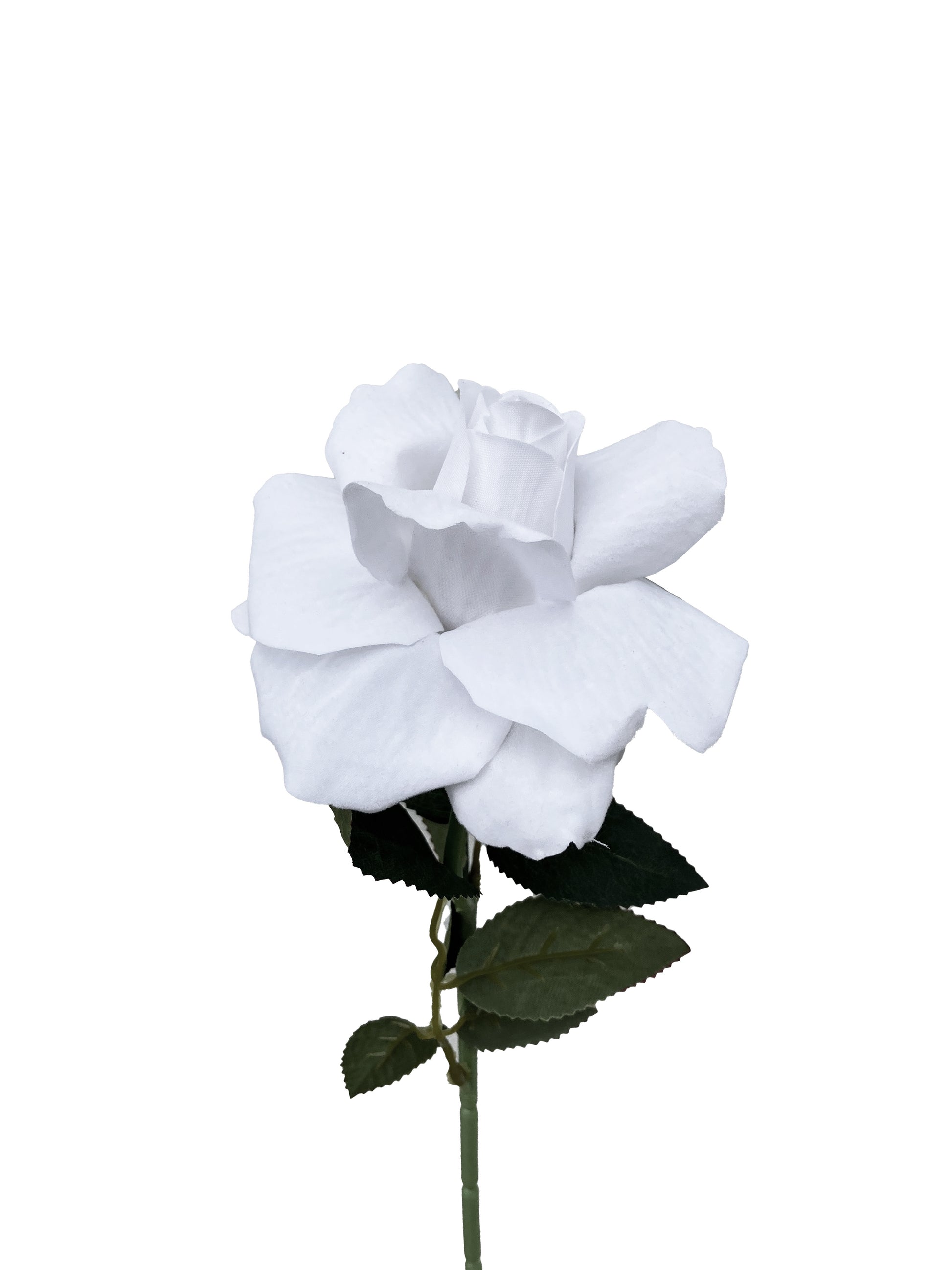 La clásica rosa artificial de color blanco puro.