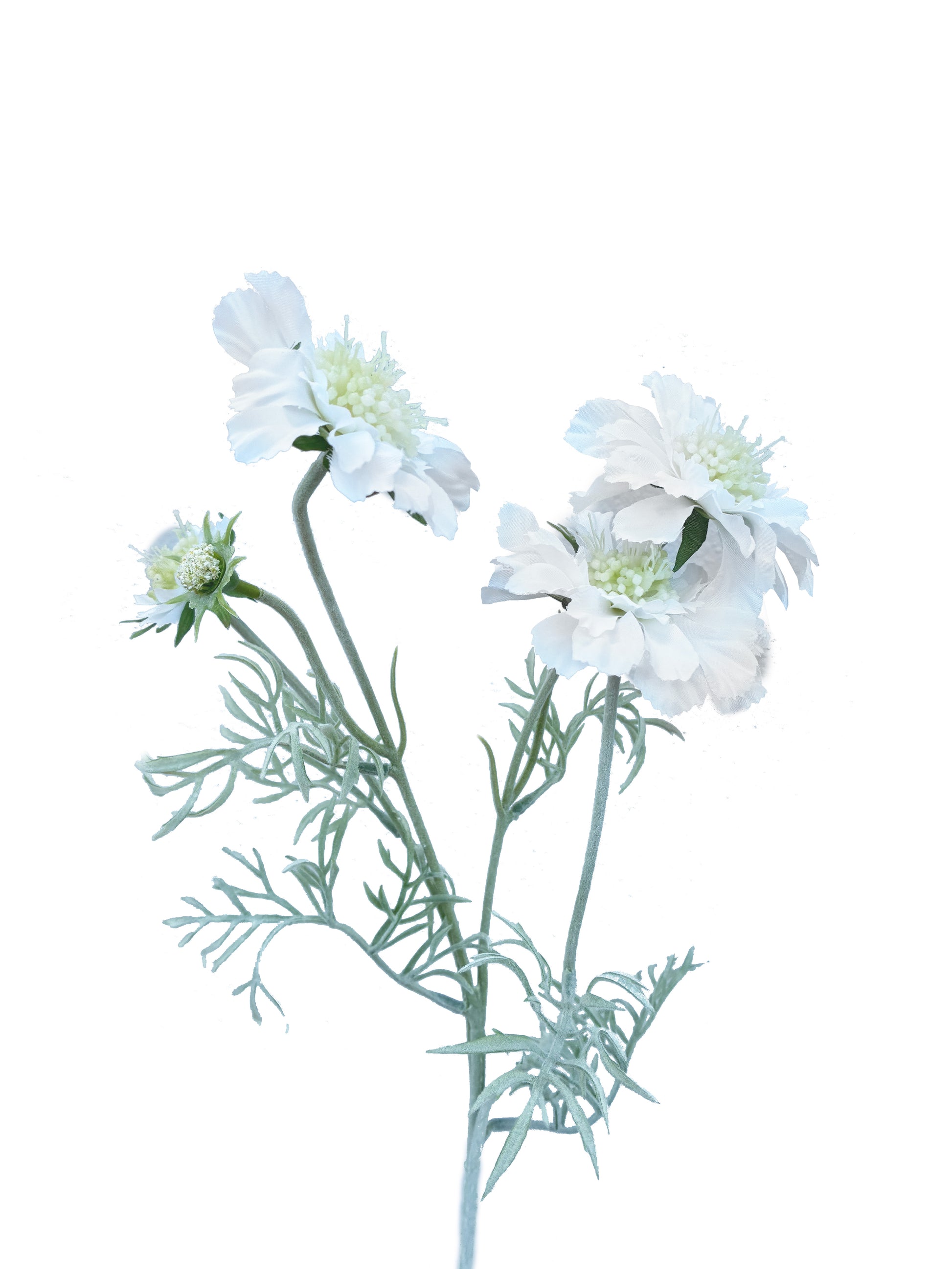 Scabiosa is a petite spring look flower, availiable in 4 shades. Each stem features 3 full size blooms, 1 half blooms and 2 buds.