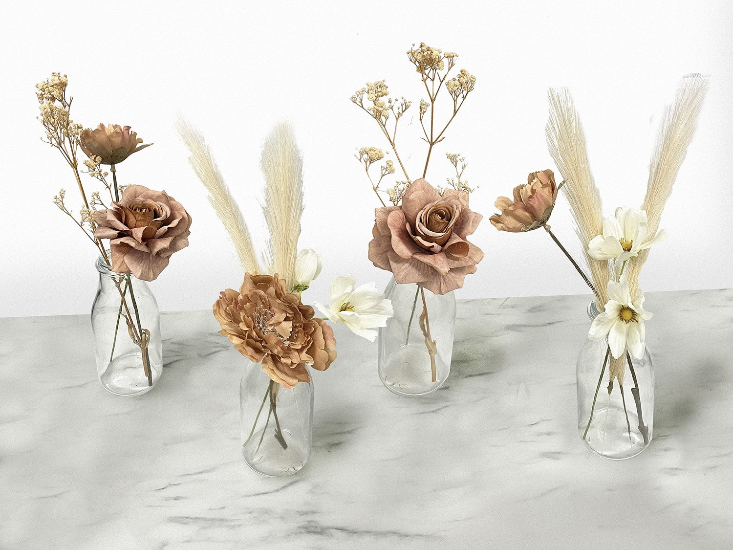 Différents styles et types de fleurs seront utilisés, qui sont des fleurs artificielles et peuvent ou non inclure des fleurs séchées en fonction de ce qui est disponible au moment de la commande.