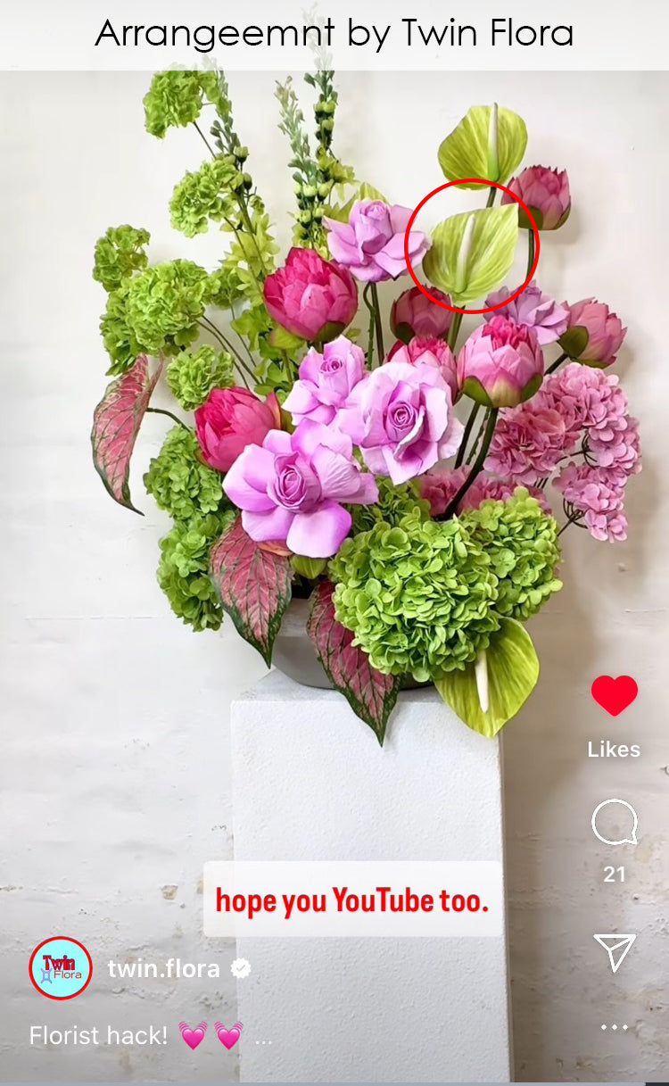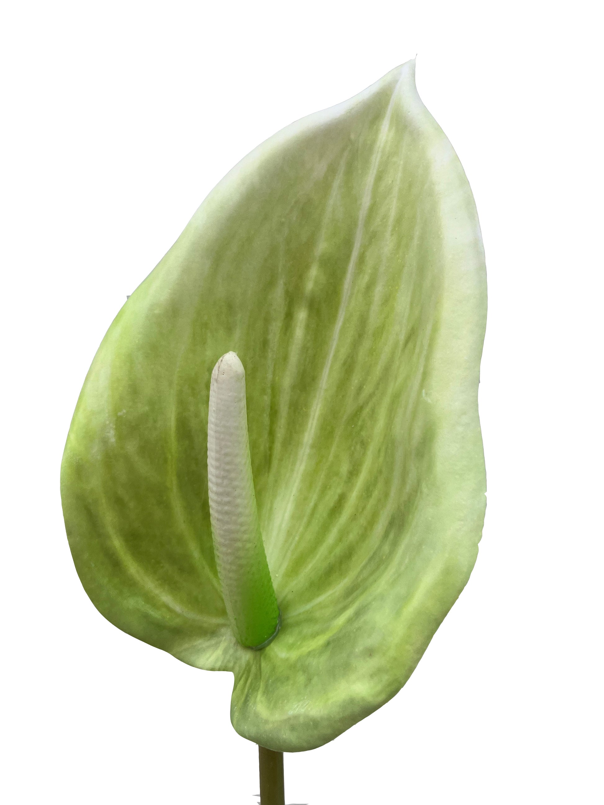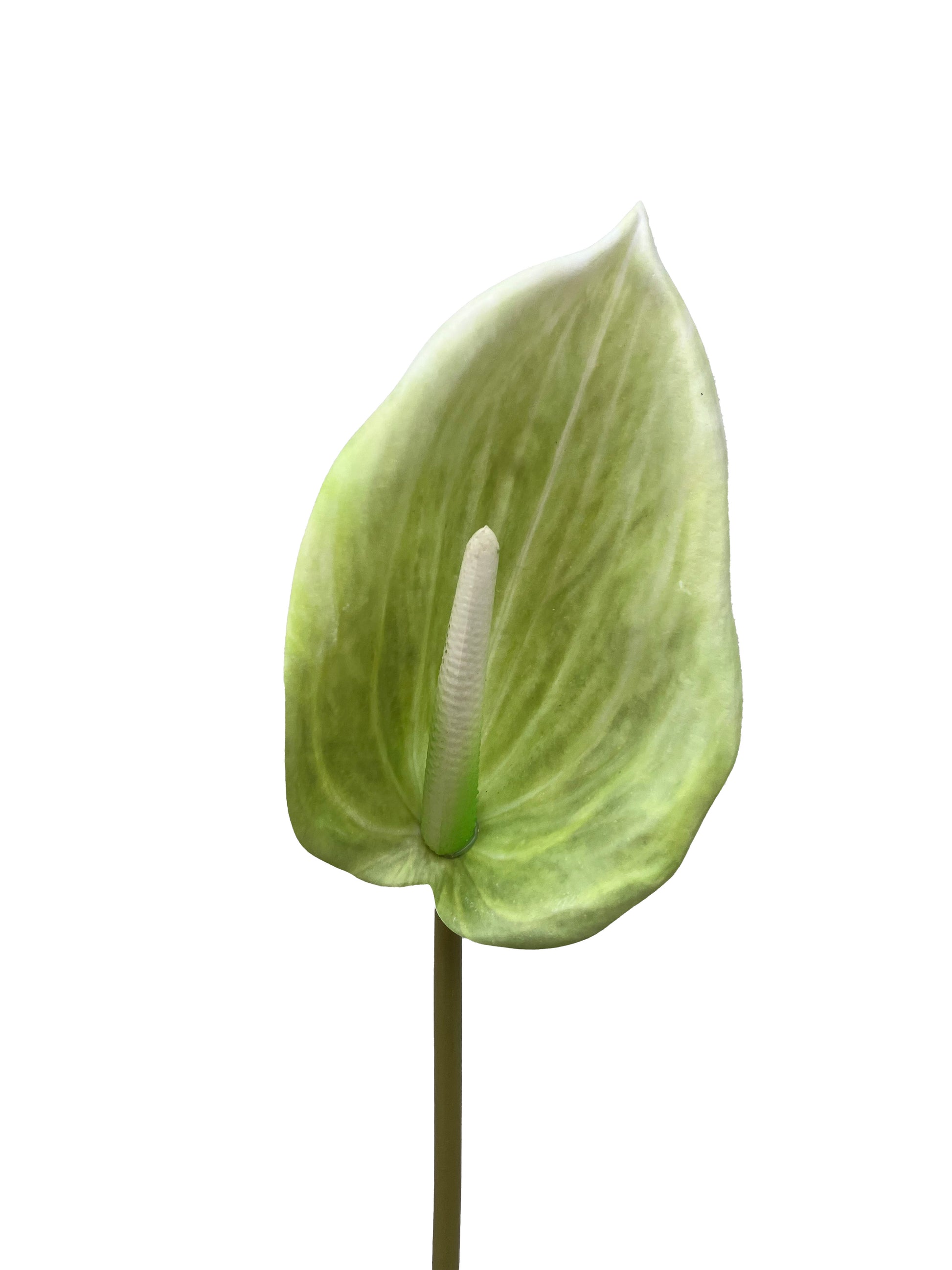 Our artificial Anthurium flower in green is a perfect compliment to any vase or arrangement in a tropical theme!.The stem has wire so you can make this beauty can be shapped in any direction. Image 3 anthirums trimmed down by artist to reduce scale.