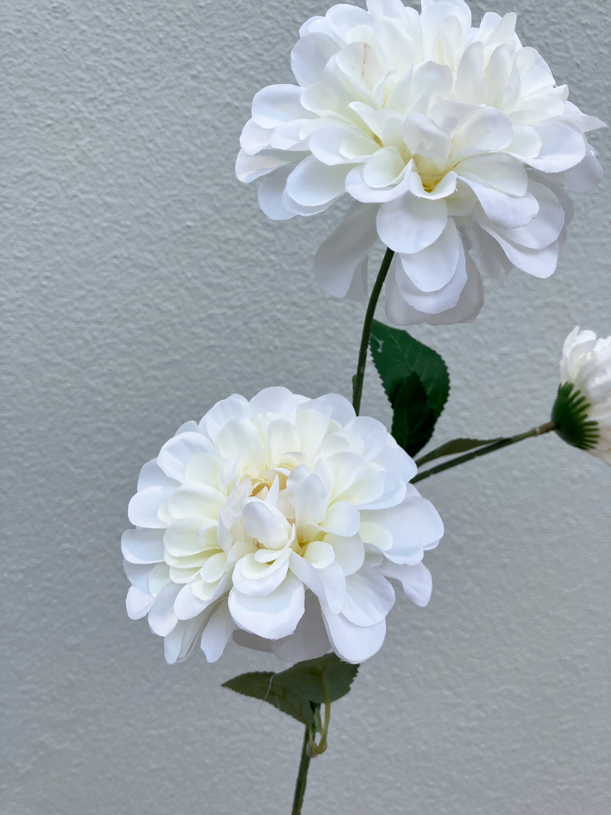 Artificial Pom Pom Dahlis spray, 2 blooms 1 bud on each stem. Availiable in multiple stunning shades.