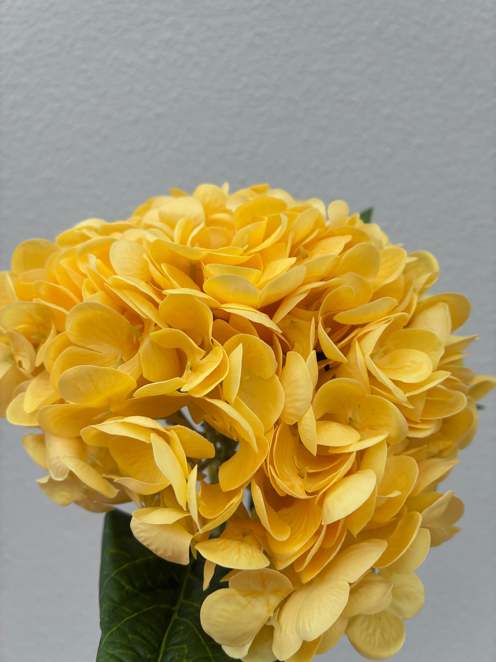 Our Real touch hydrangeas are a stunning choice to fill the base of your vase. This hydrangea features soft touch latex petals to simulate the feeling of a fresh hydrangea. Colour is yellow but slightly soft in colour so would be suited to yellow events or even with lemon shades.