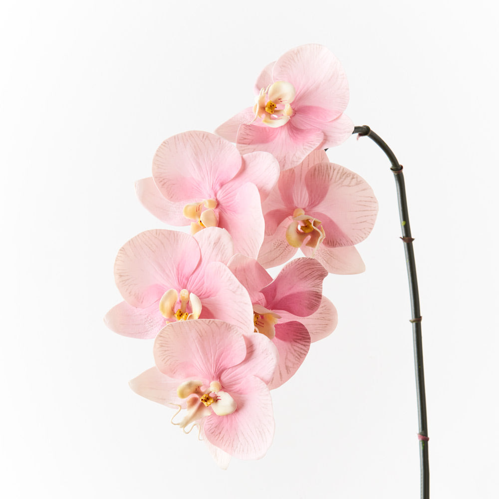 Bring a dash of colour to your interior space with this gorgeous faux Orchid Phalaenopsis Infused stem in Pink. Easily maintained this incredibly realistic artificial flower stem will bring lasting beauty into your home. Create a one of a kind artificial arrangement mixing with other stems or place in a decorative vase on its own. For longer lasting faux flower stems keep out of direct sunlight.