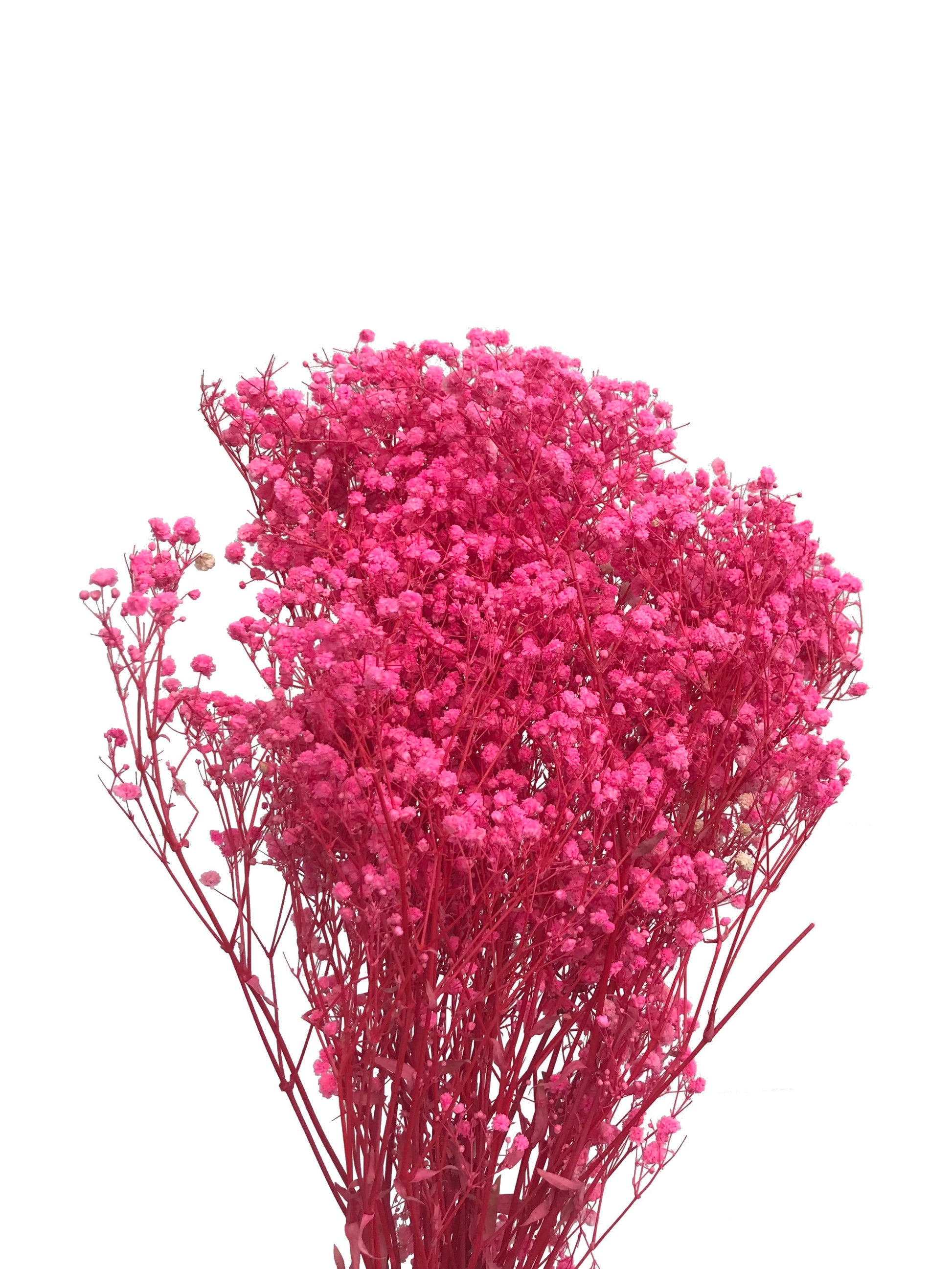 dried baby breath or gypsophilia in this vivid hot pink colour will give that real pop to any arrangement you add it to. Works well as a filler or to add that unique look to any arrangement.
